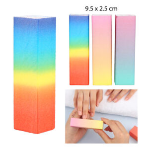 Práctico y compacto de 9.5 x 2.5 cm para llevar a cualquier lugar. Ideal para dar forma y suavizar las uñas sin dañarlas. Su textura permite un limado uniforme y eficiente. Los colores degradados le dan un toque moderno y divertido a tu rutina de manicure. Perfecto para uso personal o profesional.