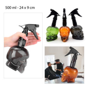Botella pulverizadora con diseño de calavera. Ideal para peluquería.