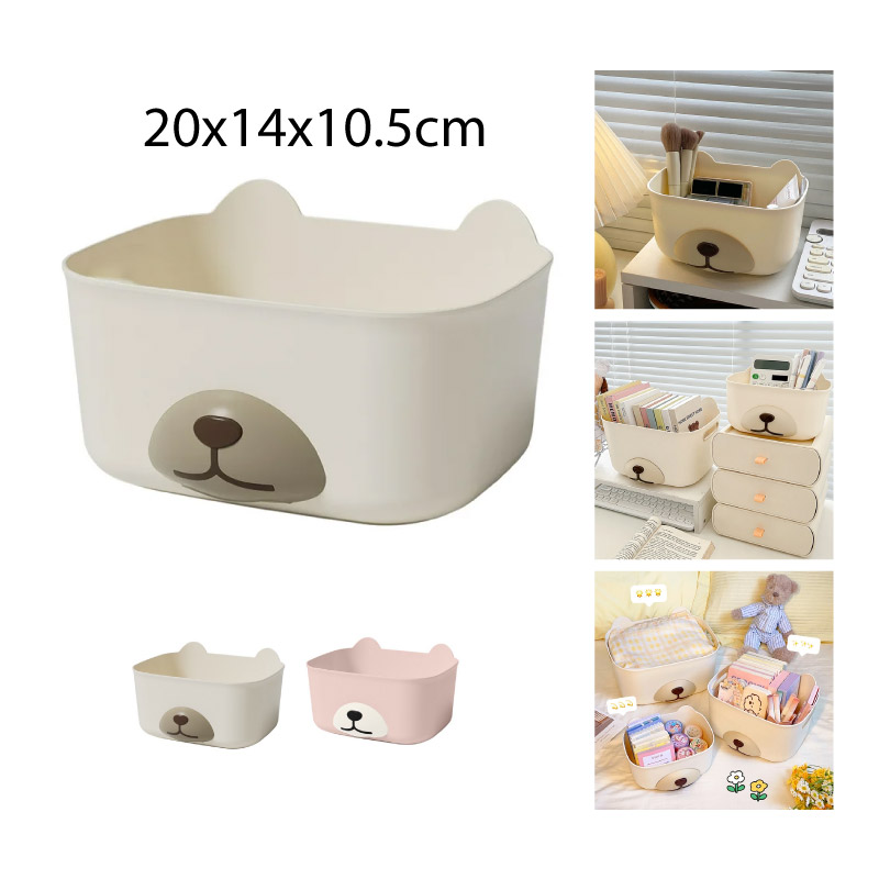 Caja de plástico multiuso con hermoso diseño de osito para almacenar distintos accesorios (oficina, higiene, cocina, entre otros).