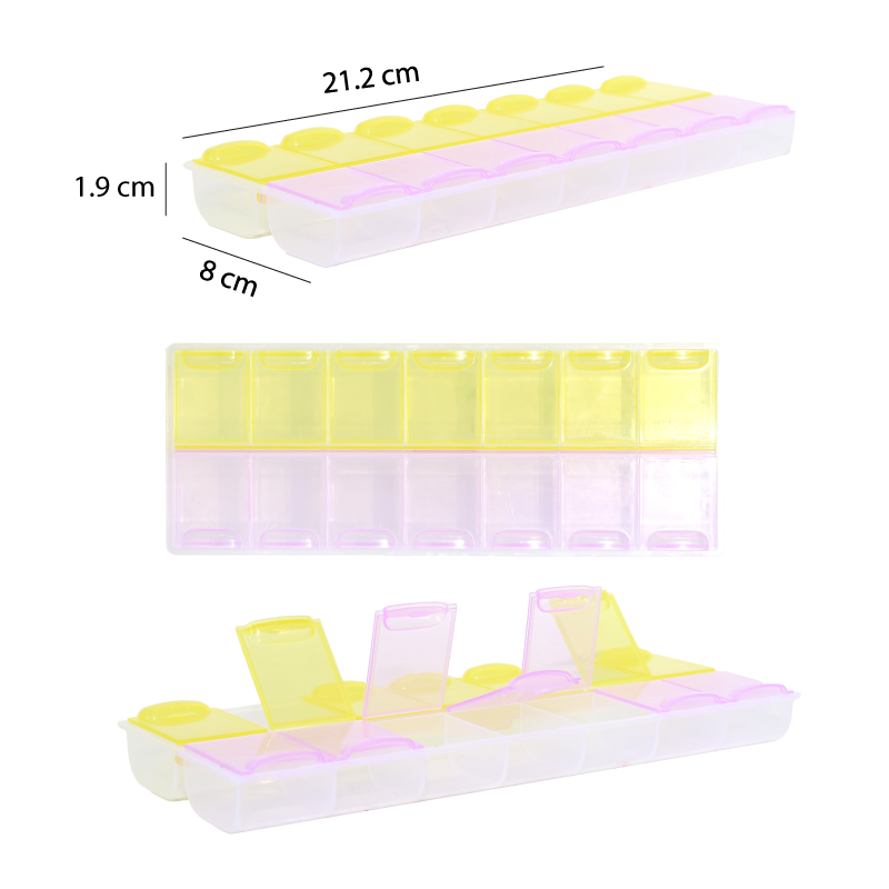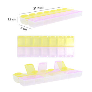 Mantén tus accesorios siempre en orden con esta práctica caja organizadora de 14 compartimientos. Ideal para guardar bisutería, cuentas, tornillos, insumos de manualidades o pequeños objetos. Compacta y resistente, es perfecta para uso en el hogar, la oficina o talleres.