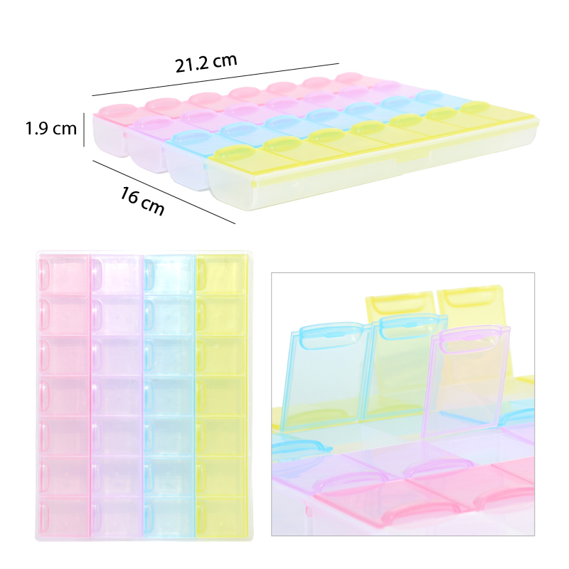 Colorida y funcional, esta caja organizadora cuenta con 28 compartimientos ideales para clasificar y mantener en orden bisutería, cuentas, accesorios, tornillos o insumos de manualidades. Compacta, resistente y fácil de transportar, es perfecta para el hogar, oficina o talleres.