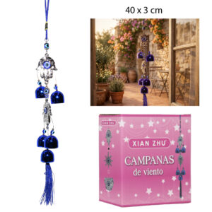 Campana colgante de viento doble en azul y plateado, perfecta para decorar y llenar tus espacios de armonía. 🎐✨