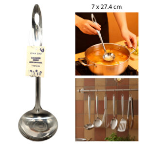 Cucharón hondo de acero inoxidable ideal para servir sopas, caldos y guisos 🍲🥄.