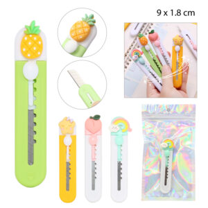 Un accesorio práctico y lleno de estilo. Este cutter pequeño de 9 cm destaca por sus diseños entretenidos, perfectos para añadir un toque de personalidad a tus tareas del día a día.