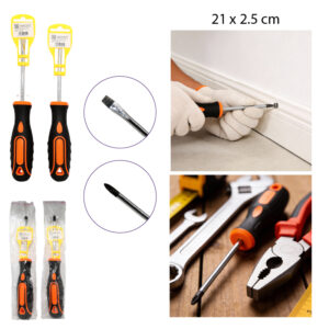 ¡Dale un giro a tus tareas! Este destornillador, con su diseño ergonómico y punta, es la herramienta perfecta para trabajos en el hogar. Su tamaño compacto y material metálico lo hacen resistente y fácil de usar. ¡No esperes más para tenerlo en tus manos!