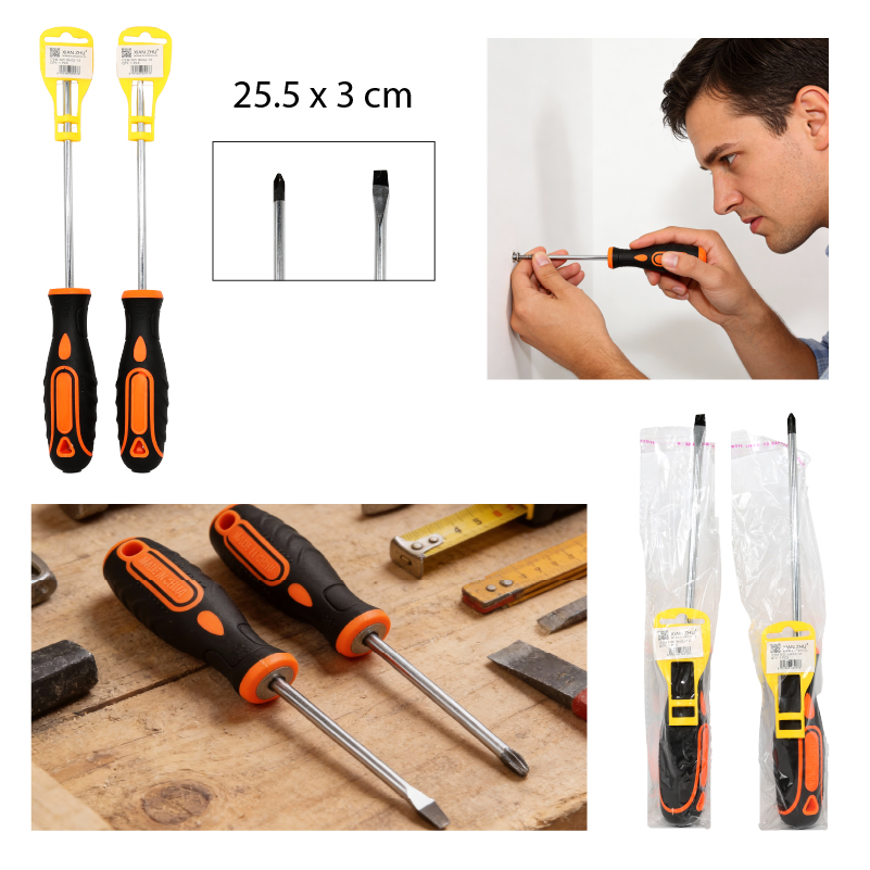 ¡Dale un giro a tus tareas! Este destornillador, con su diseño ergonómico y punta, es la herramienta perfecta para trabajos en el hogar. Su tamaño compacto y material metálico lo hacen resistente y fácil de usar. ¡No esperes más para tenerlo en tus manos!