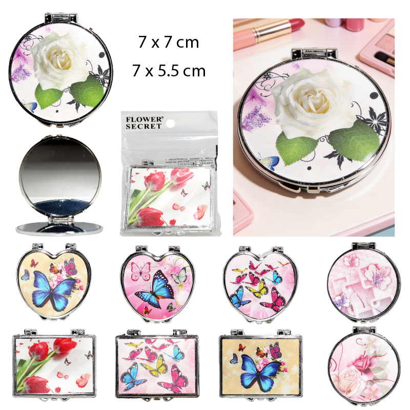 Preciosos espejos de mano, compactos y fáciles de llevar. Estos adorables espejos de flores, mariposas y corazones son un regalo elegante o perfectos para tener en tu escritorio, cosmetiquero, mochila, etc. ¡El espejo perfecto para la amante del maquillaje que llevas dentro, para que estés impecable en todo momento y lugar!