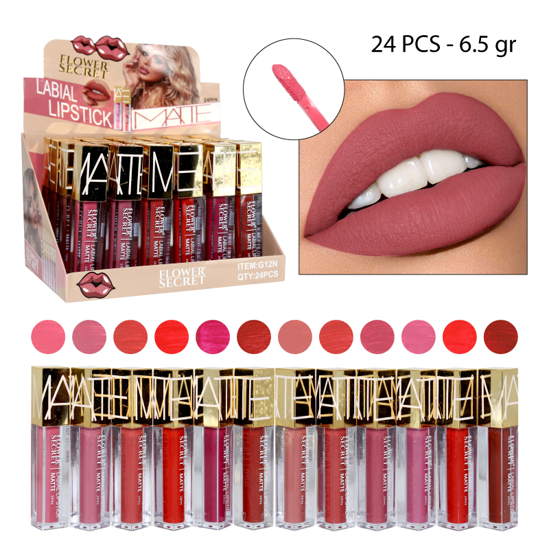 Labial liquido acabado mate de larga duración 24 hrs.