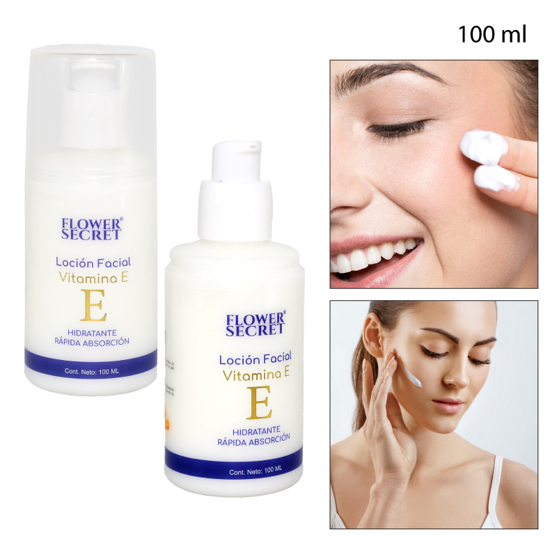 Loción facial con vitamina E. Hidrata profundamente la piel.