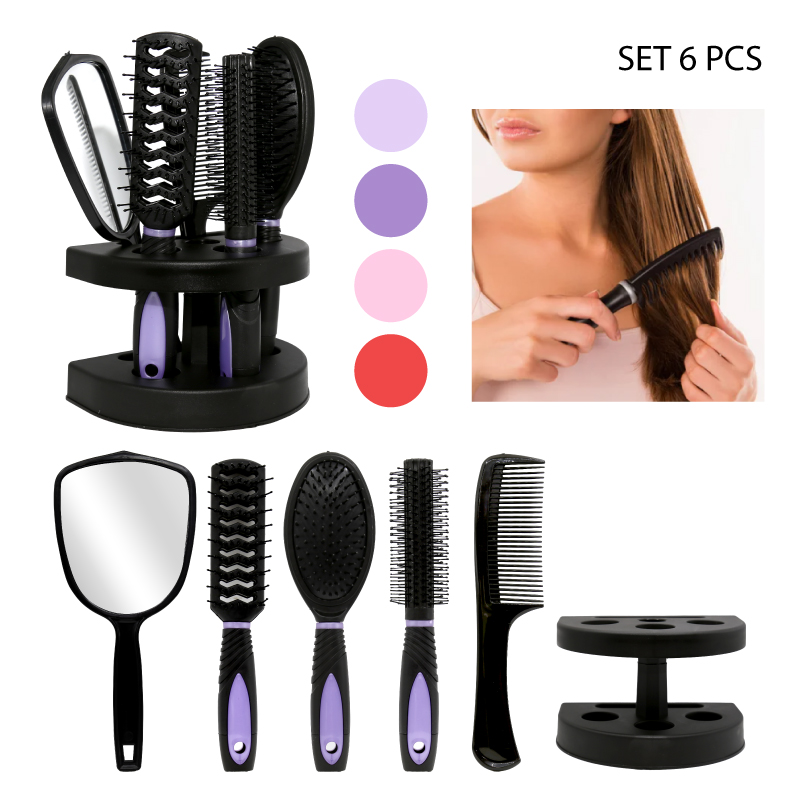 Mantén tu rutina de belleza organizada con este práctico set que incluye cepillos y un espejo, todo con un soporte elegante y funcional. Perfecto para peinarte con comodidad y tener tus herramientas siempre a la mano. ¡Ideal para el tocador o para llevar a donde quieras! 💕
