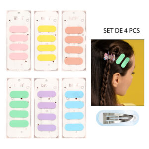 Diviértete mientras sujetas tu cabello con este set de 4 pinches en variados colores y formas. Perfectos para peinados creativos, looks casuales o detalles llamativos, combinan funcionalidad y estilo. Fáciles de usar y llevar, son ideales para cualquier ocasión, añadiendo un toque único a tu look.