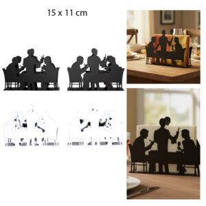 Combina diversión y practicidad con este porta servilletas metálico con diseño de personas cenando. Resistente y funcional, mantiene tus servilletas siempre a mano mientras añade un toque adorable y original a tu mesa en cualquier ocasión.