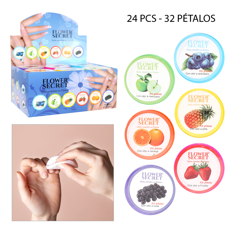 Prácticos pétalos quita esmalte con agradables fragancias frutales que eliminan el esmalte de forma rápida y delicada. Suaves al tacto y fáciles de usar, son ideales para llevar en la cartera o de viaje. Una manera práctica y aromática de mantener tus uñas siempre impecables.