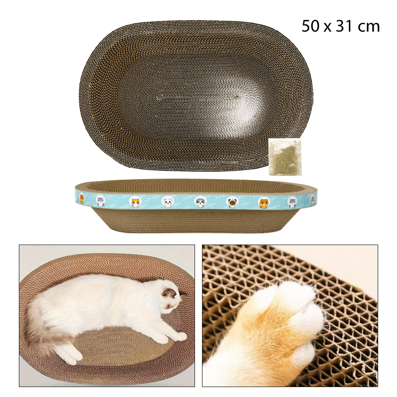 Regálale a tu gato un espacio cómodo y relajante con este rascador tipo cuenco ovalado, ideal para sus siestas y momentos de juego.