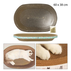 Regálale a tu gato un espacio cómodo y relajante con este rascador tipo cuenco ovalado, ideal para sus siestas y momentos de juego.