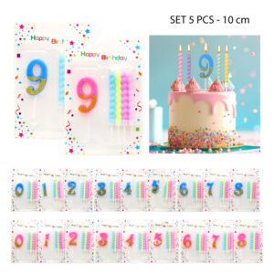 SET DE 5 VELAS NUMERADAS DE CUMPLEAÑOS – 10 CM