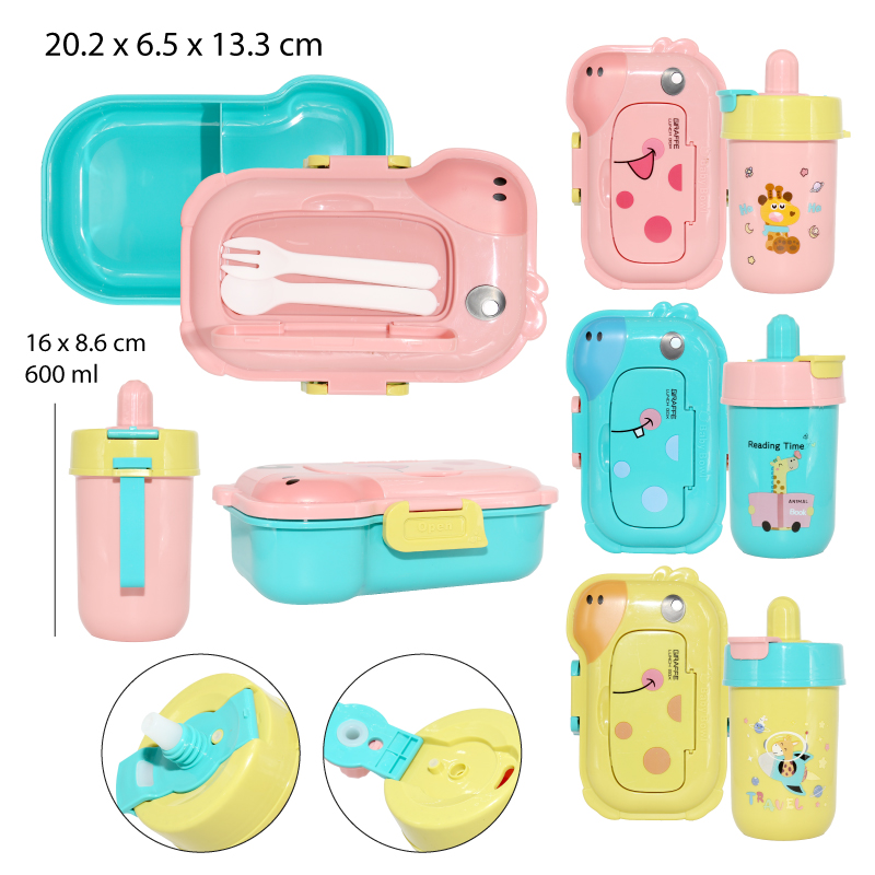 - Medidas lonchera: 20.2 x 6.5 x 13.3 cm / Medidas vaso: 16 x 8.6 cm – 600 ml