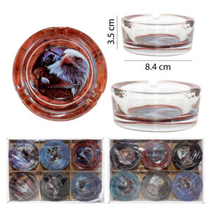 Refuerza el estilo de tus espacios con este set de 6 ceniceros de cristal, cada uno con un imponente diseño de águila, símbolo de fuerza y libertad.
