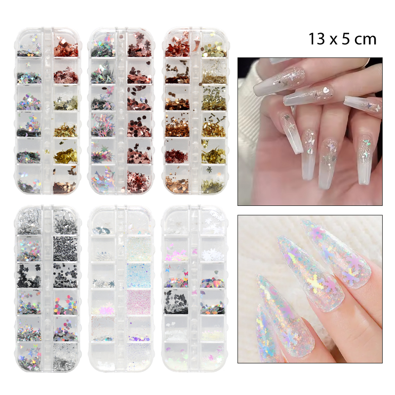 Dale vida a tus manicuras con este set de confetis de colores, ideal para crear efectos originales, detallados y modernos en uñas.